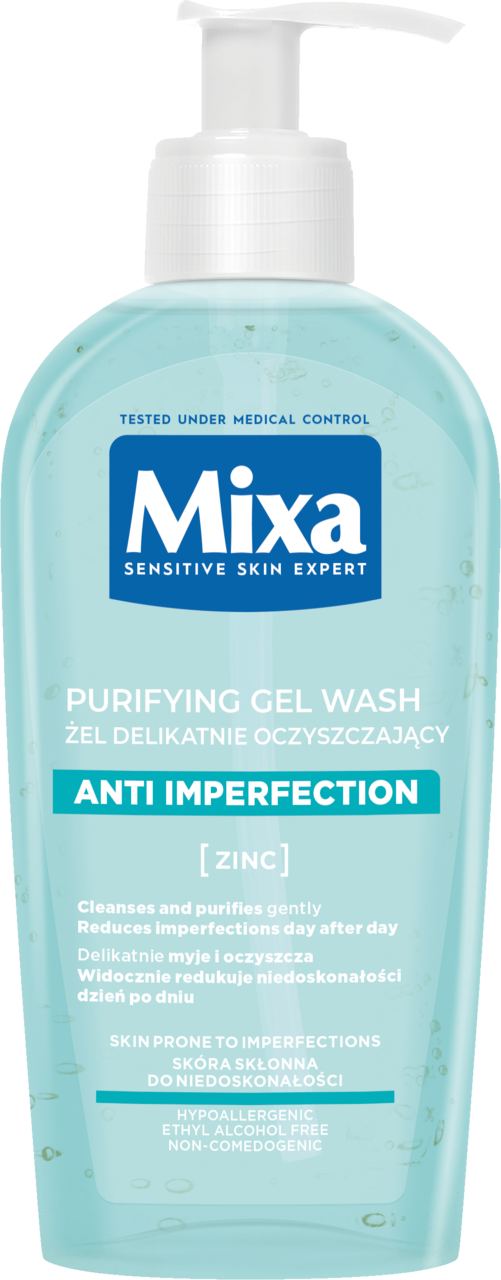 Delikatnie oczyszczający żel do mycia twarzy Mixa z cynkiem. Polecany do skóry skłonnej do niedoskonałości i wrażliwej.Żel oczyszczający przeciw niedoskonałościom posiada neutralne dla skóry pH. Nie zawiera mydła, ani alkoholu etylowego. Jego formuła wzbogacona cynkiem skutecznie usuwa zanieczyszcze...